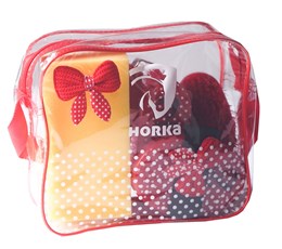 | 6-delige poetstas voorzien van strikjes-versiering. Inhoud: - Spons - Borstel korte haren - Borstel lange haren - Rosborstel - Hoevenkrabber - Manenkam Afmeting: Lengte: 22 cm Breedte: 6 cm Hoogte: 18 cm |